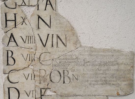 A fragment of a Roman nundinae for the month of April (Aprilis), showing its nundinal letters on the left side. Via Wikipedia.