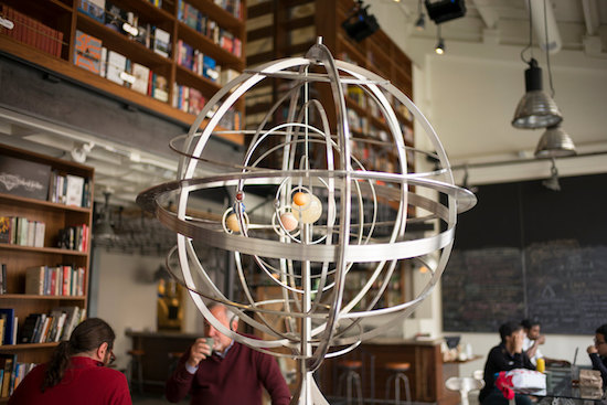 “I love that thing,” says Francis Pedraza, an Interval regular, when I ask him about the Orrery over his afternoon tea. He’s never heard the term “orrery,” which he jots down in his notebook as soon as I mention it. But he has a good guess as to what it does.