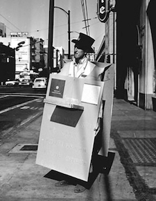 “Because of hysteria about Y2K, the Presidio was blockaded with a police checkpoint. No one else was around the usually busy park. It was a like a secret society meeting. Stewart had just returned from a vacation in Morocco a day before so he was wearing a djellaba. He looked like a monk overseeing the clock’s big moment.”