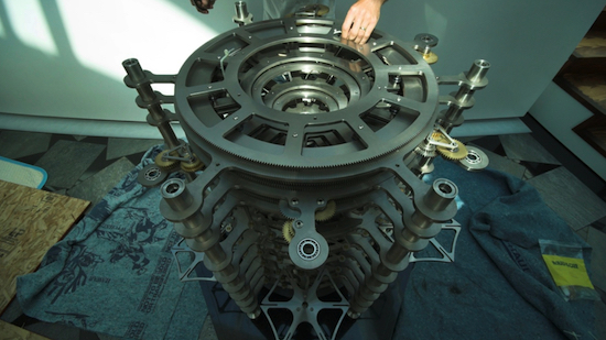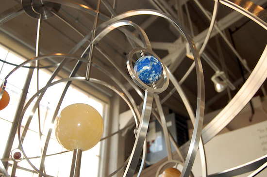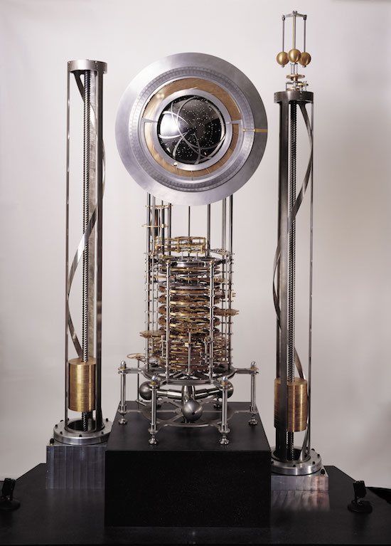 It is the Long Now Orrery, a twenty-first century interpretation of an ancient device that tracks the relative position of the six planets visible to the naked eye (Mercury through Saturn) as they make their way around the sun.