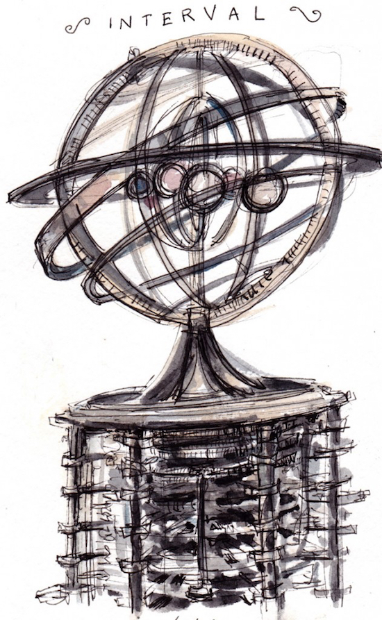 Perhaps Pedraza is right. But that does not make the effort any less necessary. And the Orrery at the Interval — mechanism, icon, “shiny metal object” — is an essential component of that effort. It draws passers-by to the threshold of long-term thinking, inviting them to expand the orrery of their concerns to include not just the spheres of their immediate orbit, but the Earth as well; and not just for the present interval, but the next ten thousand years, too.